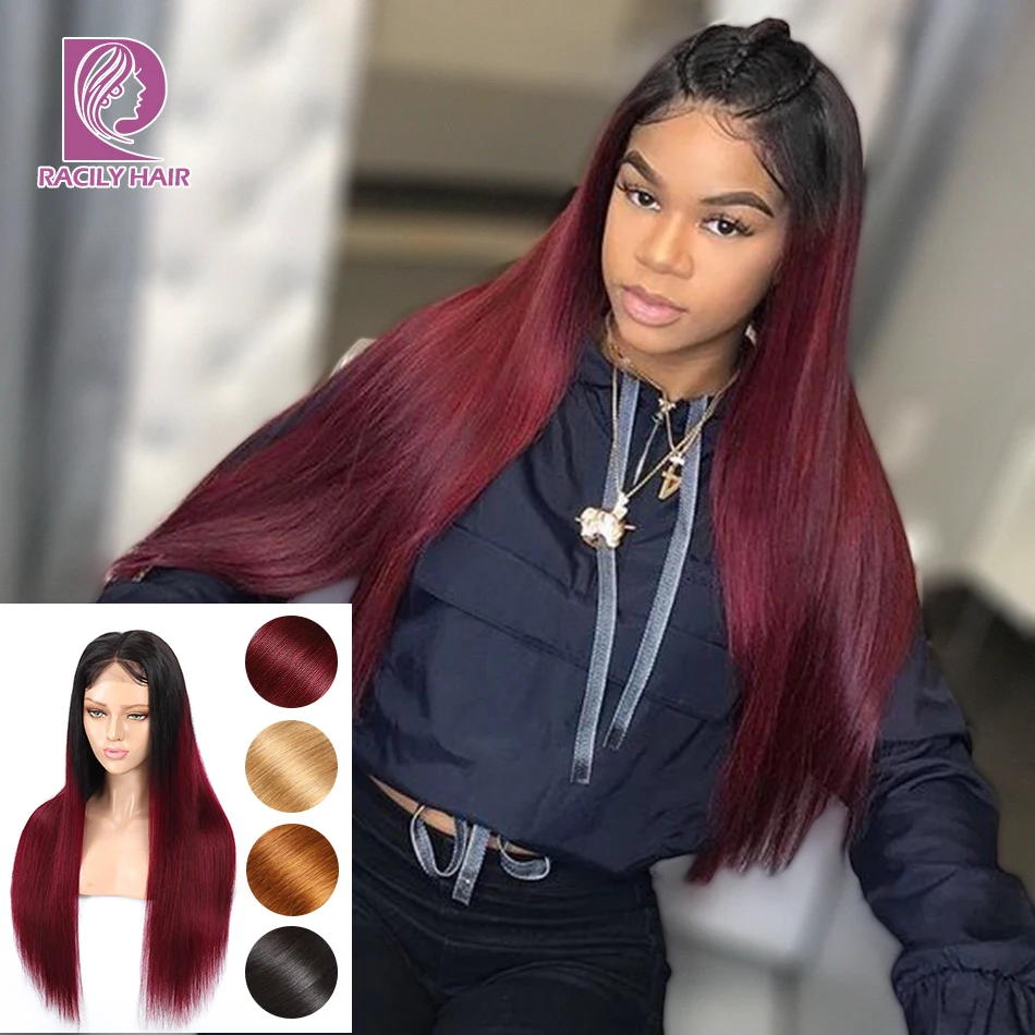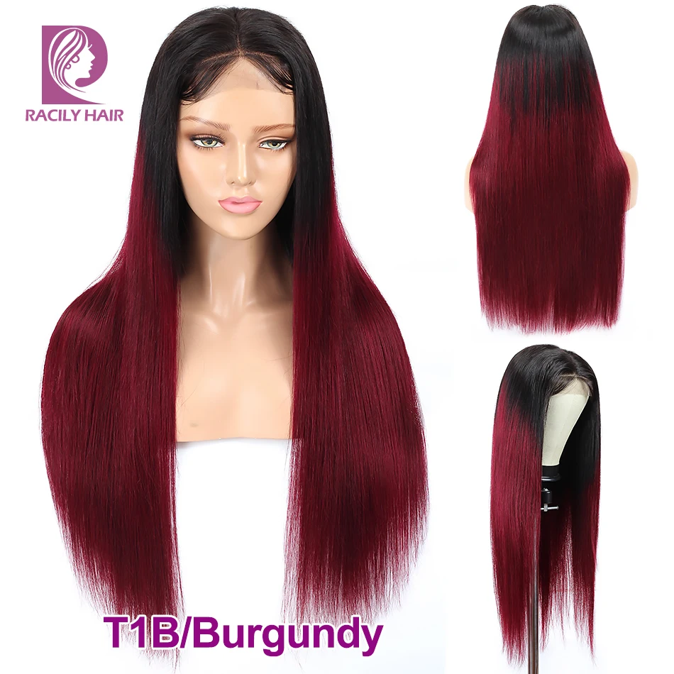 Racily Hair 4x4 Closure Wig Ombre Lace Closure Human Hair Wigs For Black Women Burgundy Red Remy Brazilian Body Wave Hair Wig : Click Here